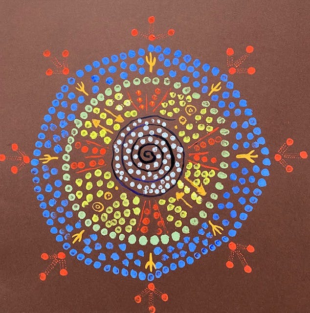 We gaan aan de slag met het maken van een mandala, geïnspireerd door traditionele Aboriginal symbolen en de unieke dotpainting-techniek.