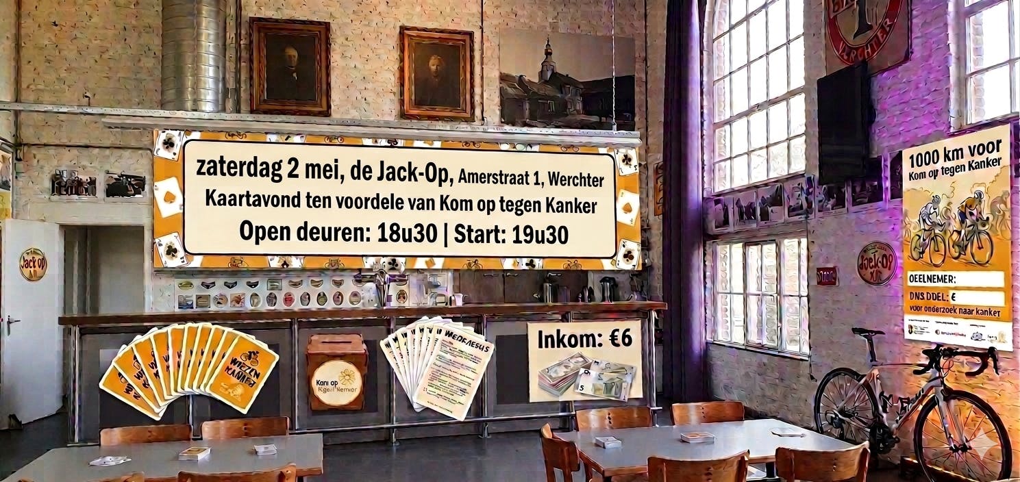 Een leuk avondje wiezen of samenzijn ten voordele van de 1000 km voor kom op tegen kanker met lekkere drankjes en soep/ croques