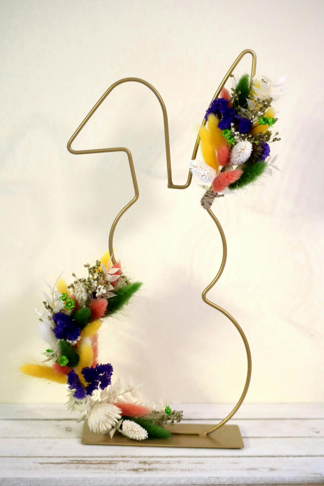 Wat is er meer Pasen dan de Paashaas zelf? Bij Atelier Mariette maken we een frame in de vorm van konijn op met droogbloemen en creëren zo een prachtig decoratiestuk.