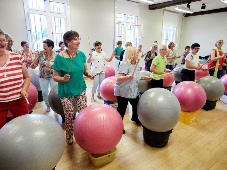 Ferm Gerief | Ontdek de drummer in jezelf en waag je aan Drums Fit. Een vrolijke workout voor een boost van je humeur en je conditie. Wat mag je verwachten? Drums Fit is een groepsfitnessles waarbij je op het ritme van de muziek allerlei pasjes uitoefent en intussen met drumsticks op een zitbal trommelt. Naarmate de les vordert, voer je de intensiteit en de snelheid van de oefeningen op. Zo verbrand je heel wat calorieën, oefen je je spieren en verbeter je je coördinatie tussen ogen, armen en benen. Drums Fit is zowel geschikt voor kinderen als voor volwassenen van elke leeftijd, man of vrouw