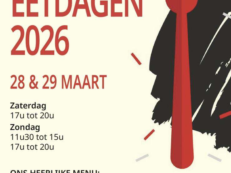 Iedereen welkom op onze eetdagen ten voordele van onze parochiezaal De Wal. Dit jaar serveren we: stoofvlees, videe, visschotel, Burger Deluxe, kaaskroket, curryworst en lekkere desserten.
