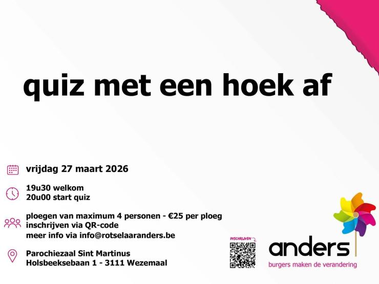 Burgerbeweging anders Rotselaar organiseert op 27 maart 2026 een unieke quizavond. Met de slogan “een avond met een hoek af” belooft het een verrassende mix te worden van kennis, humor en kritisch denken. Voor wie durft af te wijken van het klassieke quizpad.