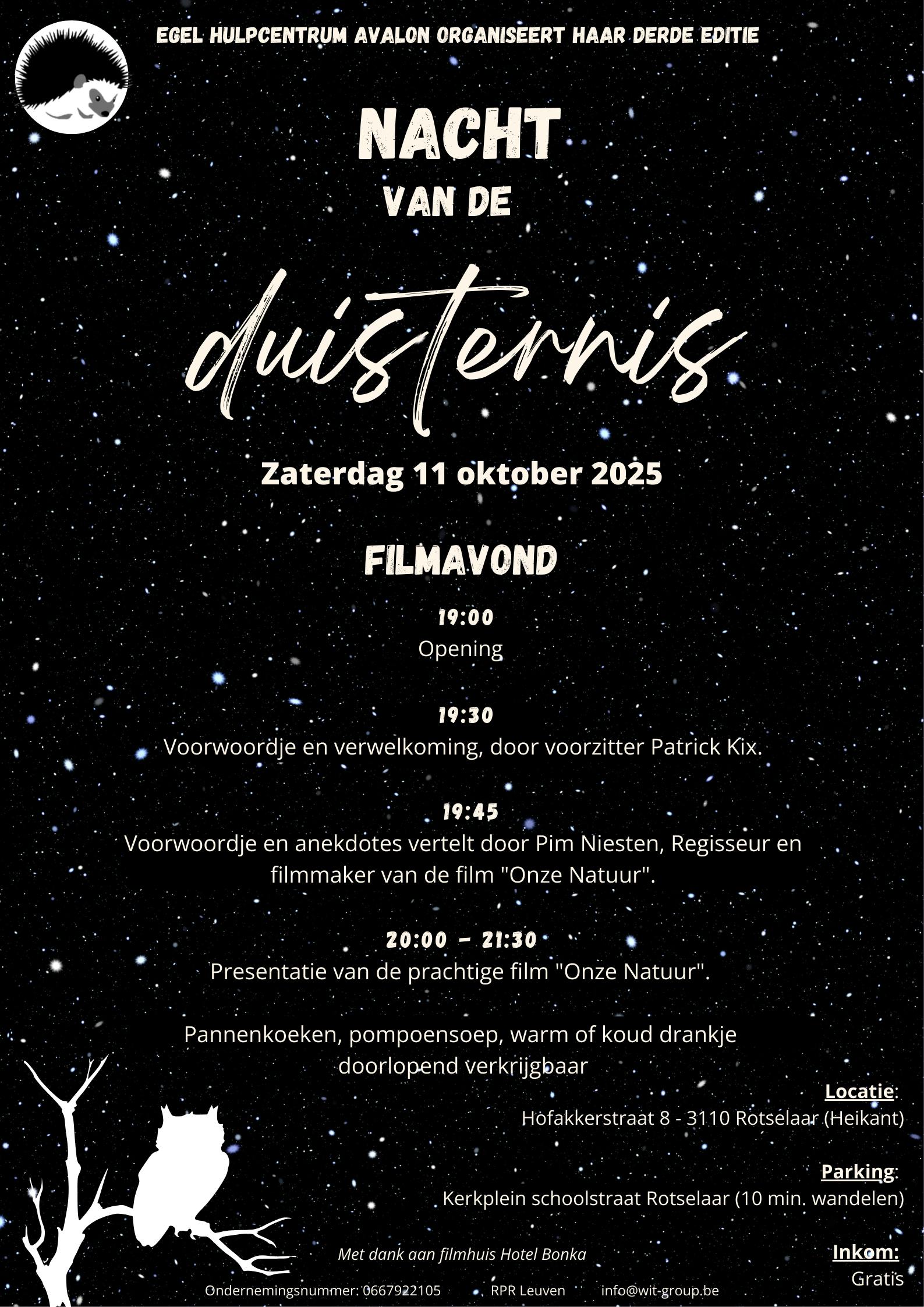 Op zaterdag 11 oktober 2025 organiseren wij ons derde evenement voor "De Nacht van de Duisternis".